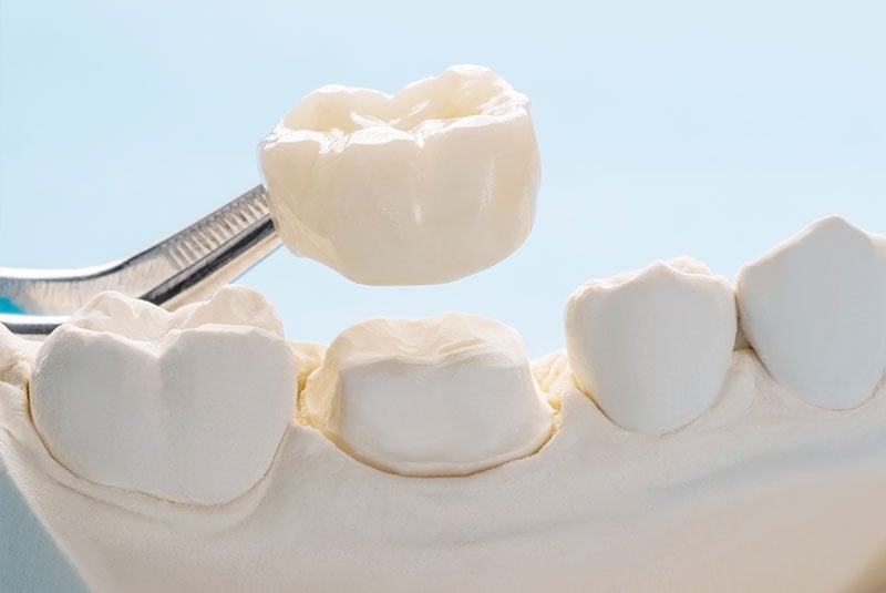 A crown (or cap) is a covering that encases the entire tooth surface restoring it to its original shape and size. A crown protects and strengthens tooth structure that cannot be restored with fillings or other types of restorations.